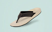 Orthopädische Sandalen mit individuell geformtem Fußbett.