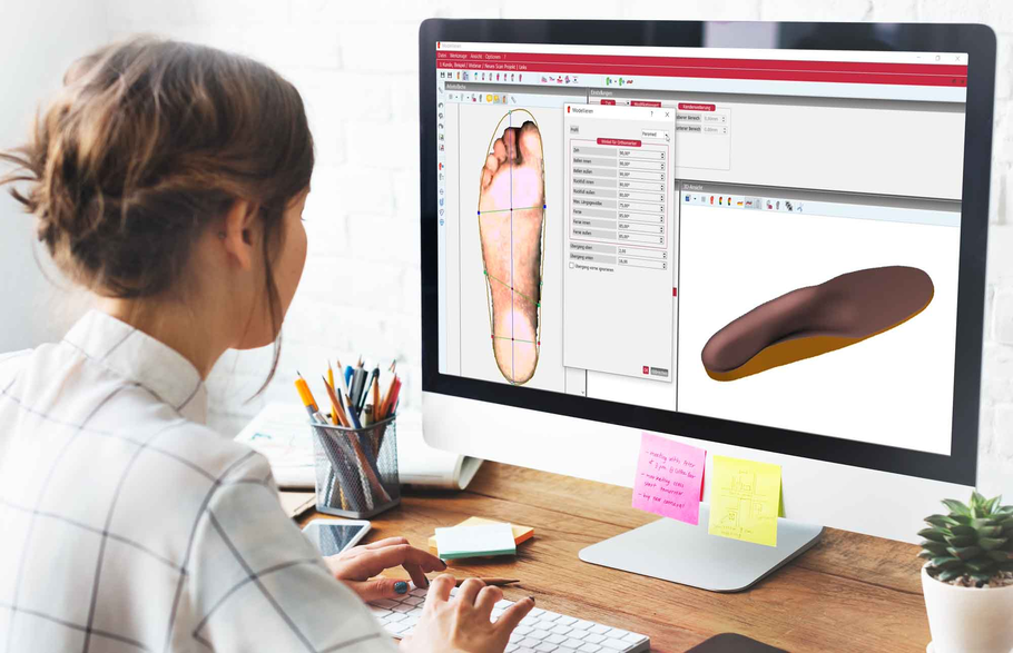 Integrated, user-friendly modelling software enables individual insole design for top and bottom side. High efficiency through automated work steps.